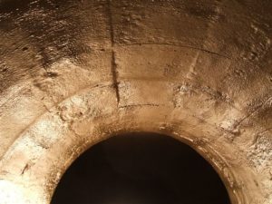 The age and depth of the sewer line, combined with a project design that assumed 15 ft. of hydrostatic water pressure above the invert with an engineered safety factor of 1.5, led to a Spraywall by Sprayroq application thickness of 1,250 ml. This coating was determined to be able to overcome the earth load, with applicable live load and the assumed hydrostatic load above the pipe.